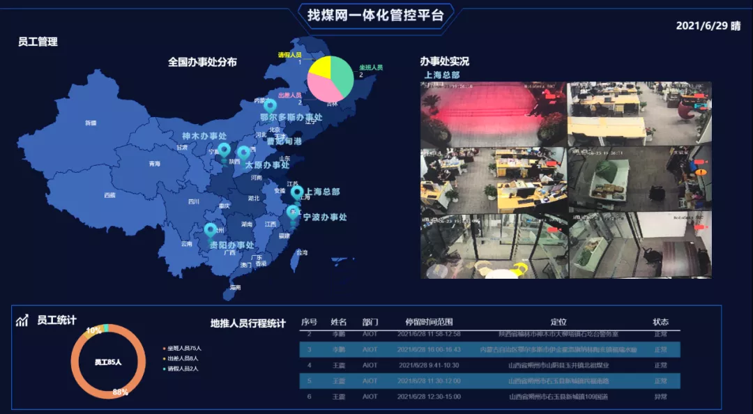 决策指挥中心将所有数据自动汇集、分析、汇报,有效应对日常管理以及突发情况,辅助管理者全面掌控企业运行态势,提升监管力度和工作效率,达成多方位高效协同,实现企业智能化的统一采购、统一建设、综合运维!