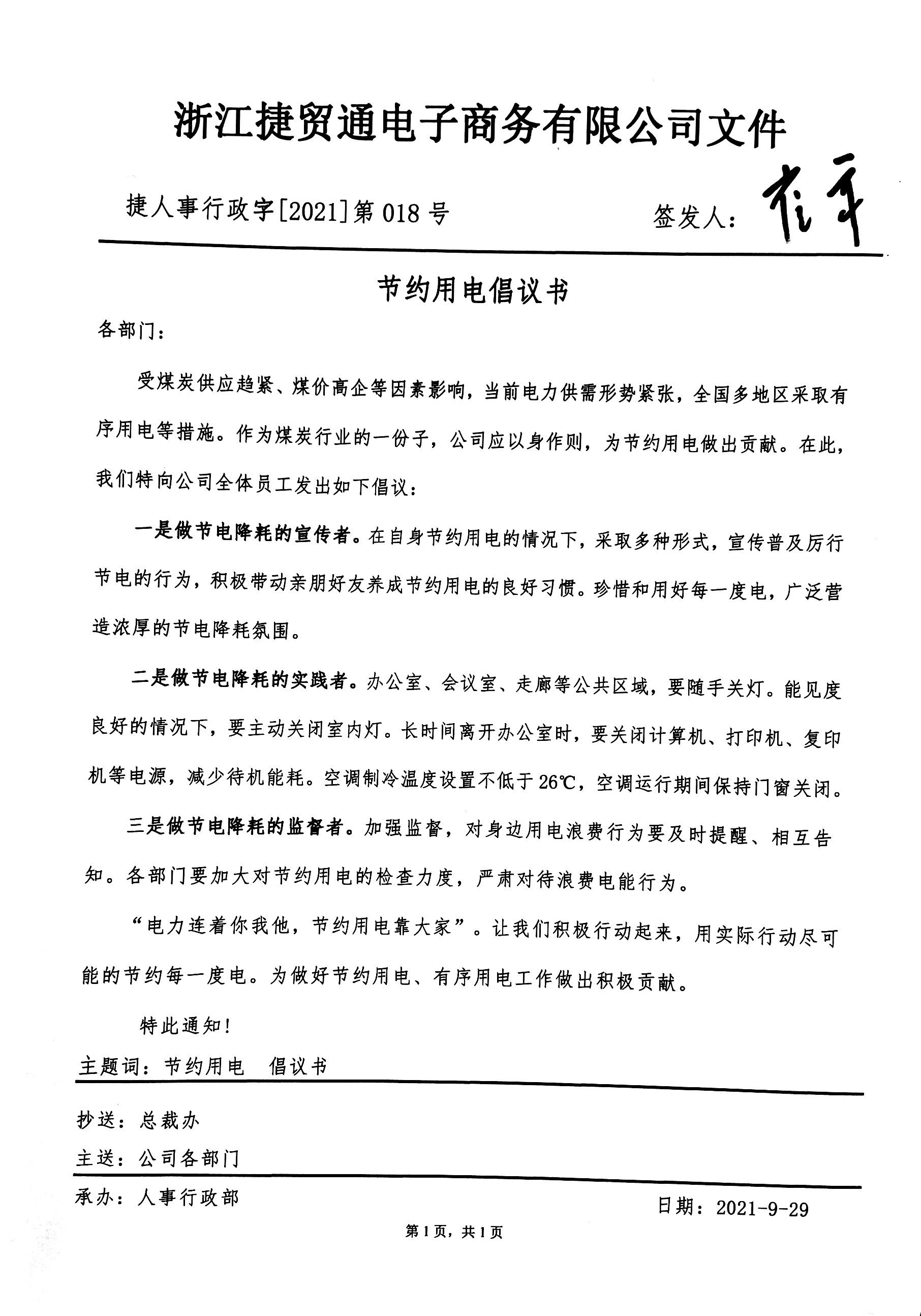 受煤炭供应趋紧、煤价高企等因素影响,当前电力供需形势紧张,全国多地区采取有序用电等措施。作为煤炭行业的一份子,找煤网以身作则,特向全体员工发出倡议,用实际行动为节约用电做出贡献。倡议内容如下: