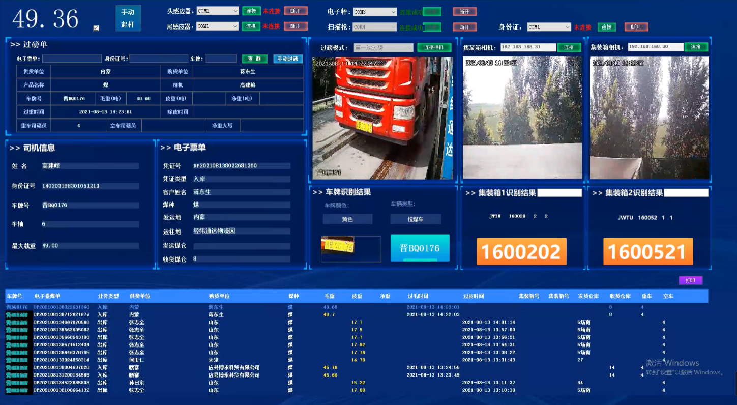 利用电子提煤单、人脸识别、车牌识别、车型识别、集装箱号识别等功能,可在无人值守的情况下完成自动称重,司机全程无需下车,同时监控司机作弊行为、对异常信息进行实时报警,实现车辆过磅自动化。