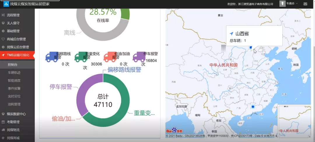 通过北斗/GPS等技术对车辆和人员实时监控,实现对车辆、司机、线路调度、油耗、车载等在线管理,对货物安全动态监管及运输轨迹监测。