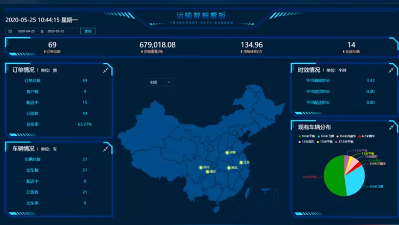 ░ 实时追踪采集数据。从车辆发运开始,系统实时在途追踪,包括车辆所在的经纬度、时速、方向、海拔、行驶状态,实景地图一目了然。
