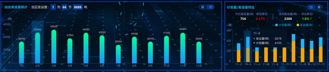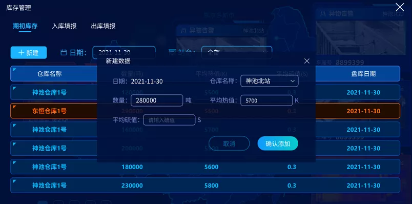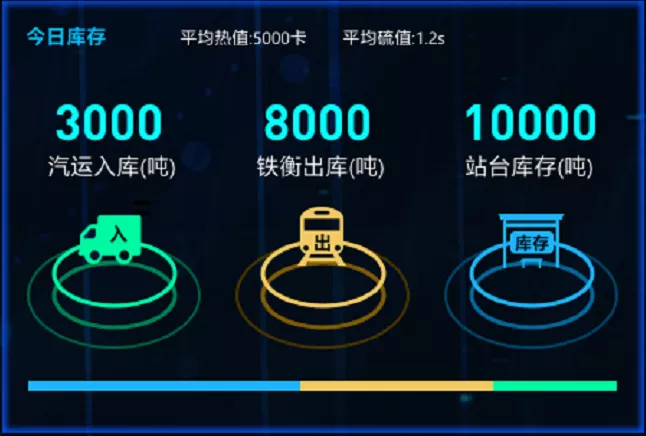 在综合管控平台大屏上,可以直接查看库存变动及数据显示: