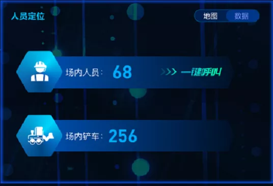 对人员、铲车精准定位,在综合管控平台上可直接一键呼叫员工,实现管控人员不在场时也能及时调度、解决问题: