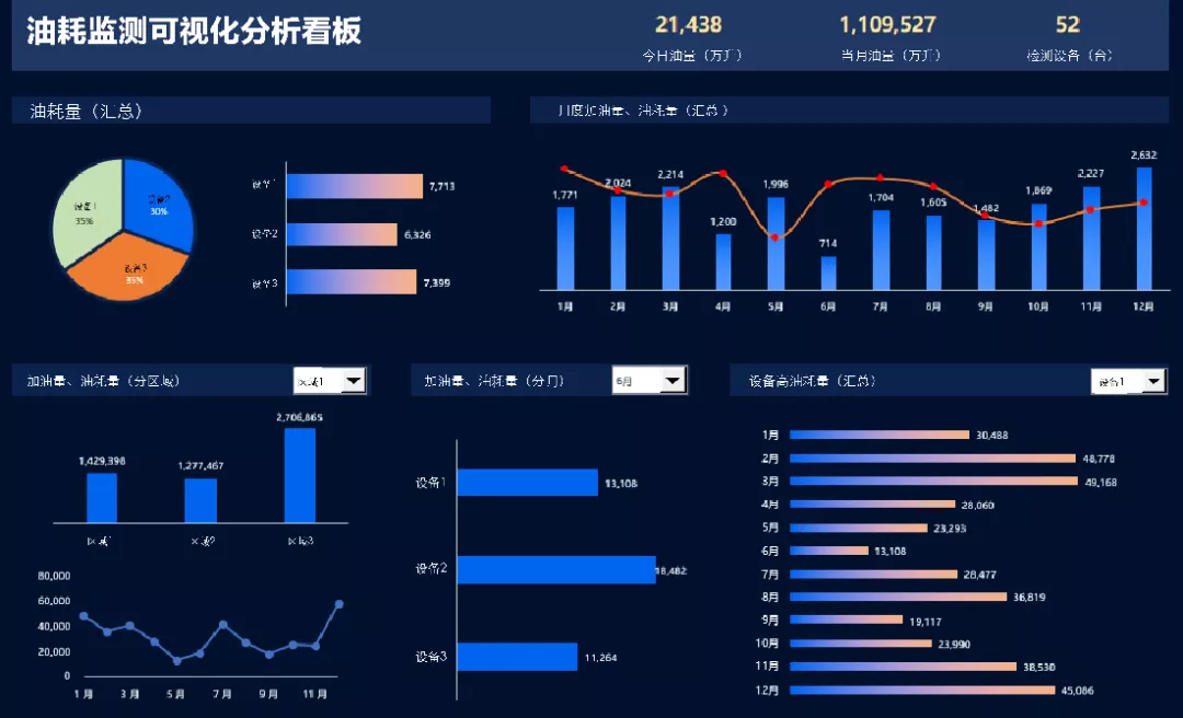 ░ 油耗管理。自动采集各类机械加油量和耗油量,及时发现并优化高油耗机械;