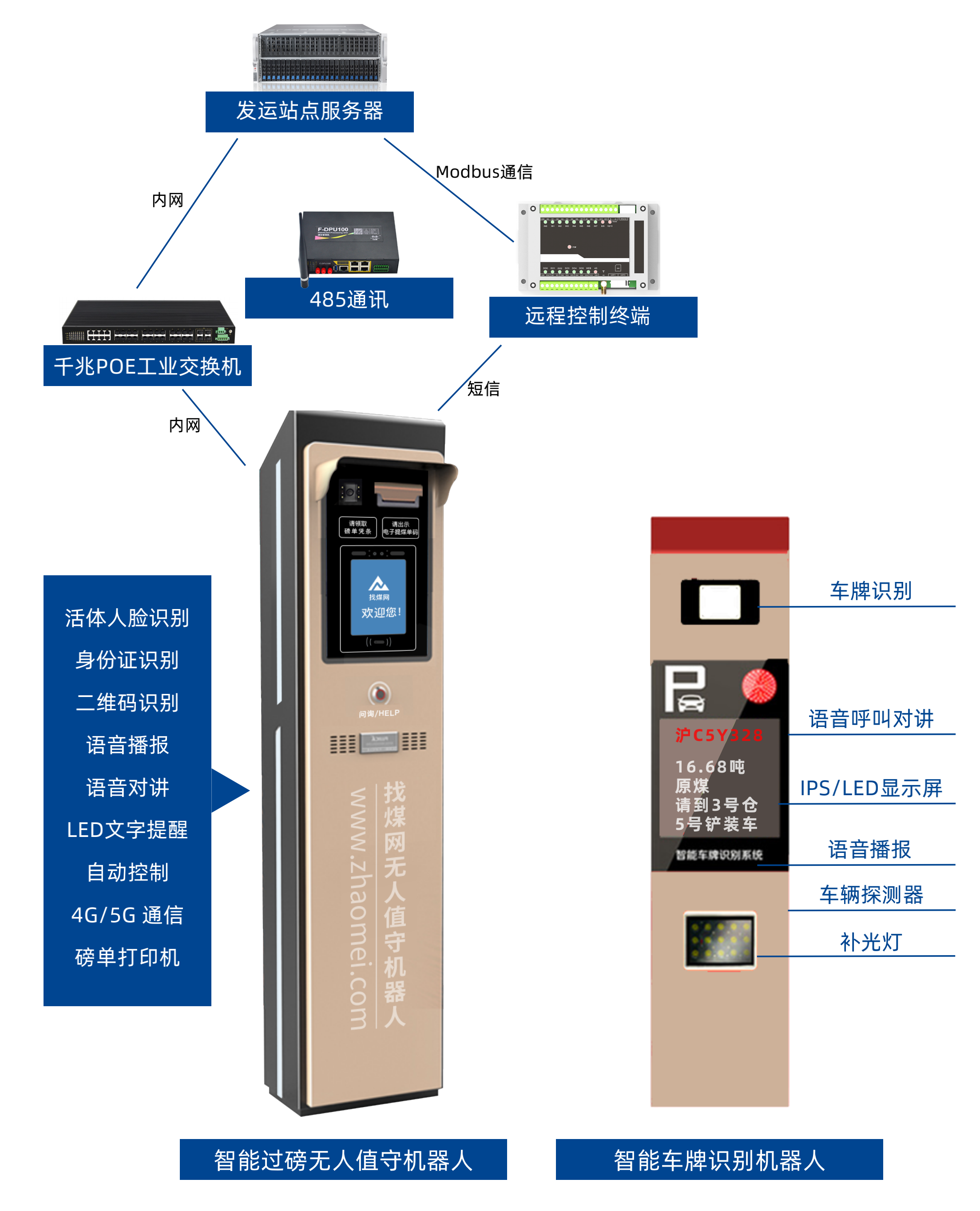 ④自动起杆放行:磅房不需要人员值守,系统自动识别司机人脸、证件或电子提煤单,数据校验成功自动起杆放行,并有语音和文字提醒;
